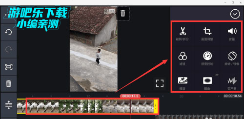 5、点击视频素材,可以对视频进行裁剪,调整画面、速度,也可旋转,添加滤镜等。