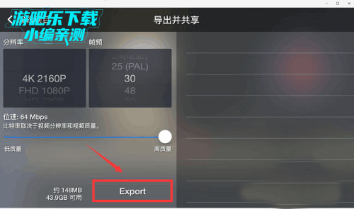 8、最后可选择分辨率、帧频,点击“Export”,就会存到手机相册。