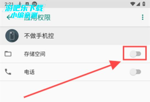 3、进入权限界面,点击储存空间后方的开关,即可完成授权