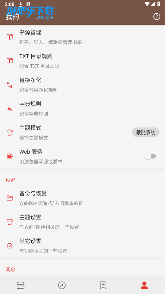 复制该文件到手机内置存储根目录找到 YueDu3.0文件夹(如已有该文件请先删除该文件或者备份到其他地方再复制到文件夹);