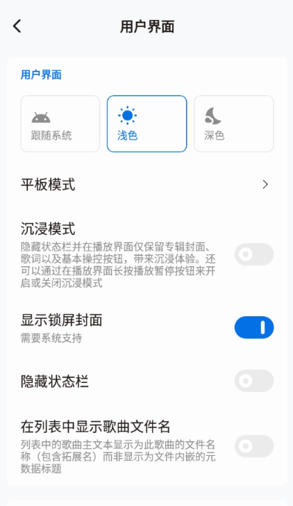 4、在用户界面设置中,找到沉浸模式,点击后面的开关按钮,如图所示:
