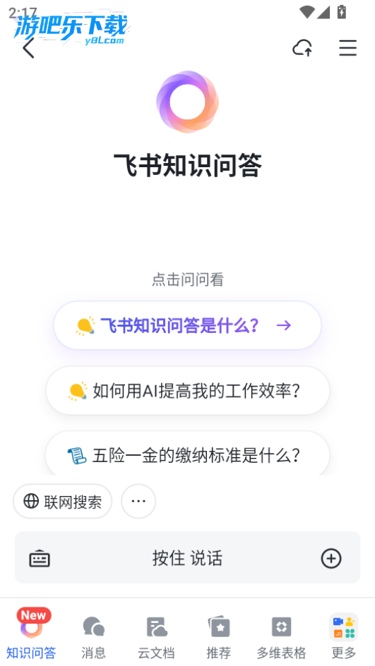 下载进入飞书软件,在这里说话可以问ai各种问题