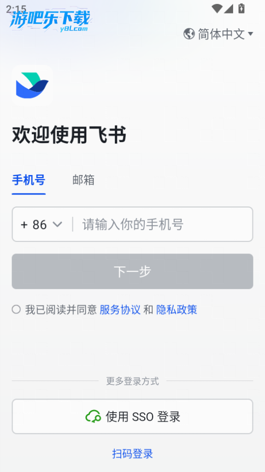 下载进入飞书软件,输入手机号