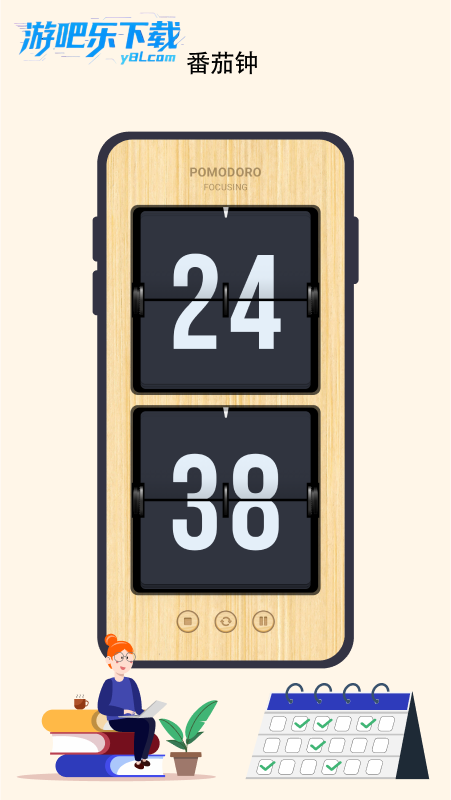 点击开始按钮启动计时,翻页动画 + 滴答声效提升专注度