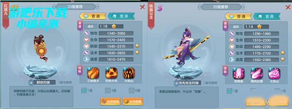 这个铁山公主是紫色的相对容易获得,红孩儿建议商店兑换,召唤的话不一定必出的。红孩儿的“三昧真火”有47%几率附带“灼烧”效果,而铁扇公主的技能是优先攻击“灼烧”目标,且对于“灼烧”目标有50%的几率再出手一次,两者都带有对“灼烧”有克制作用的“压制”,且“灼烧”本身就会处于持续掉血状态。这2个组合同等条件下,估计2回合就能让对面的都躺了。速度方面六耳猕猴要先出手,不过六耳猕猴是ss+的,速度属性上就要高于铁扇公主,一般情况先不用刻意调整速度就可以保证六耳猕猴先出手。