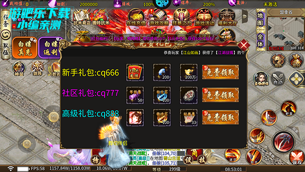 3、免费礼包:游戏内还提供福利礼包,且兑换码就写在旁边,