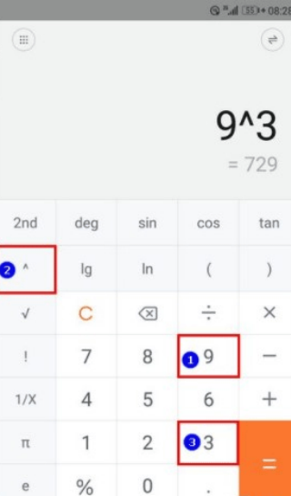 如果想进行指数运算,操作步骤如下(以计算9的3次方为例):