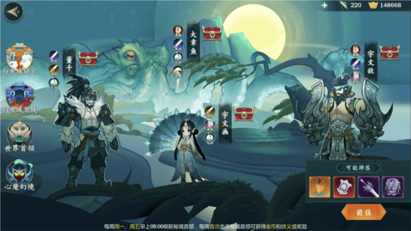 - 装备体系调优,装备等级提升,全新十阶套装效果装备来袭,少侠可根据不同侠客的属性,针对性搭配不同套装,追求侠客特色与套装极致配合的效果;