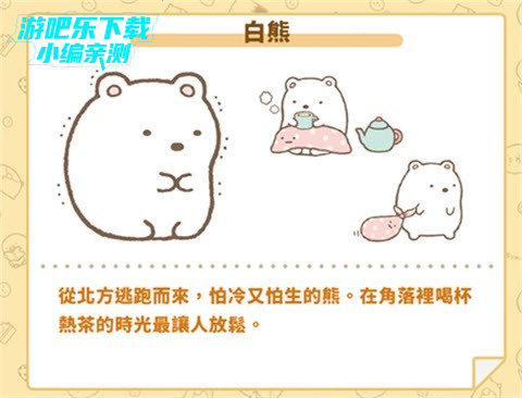 Shirokuma是一只害羞的熊,他向南迁移以避免寒冷。在角落里喝热茶时,白熊感觉最平静。