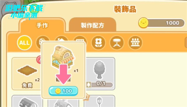 6、选择右下角的装饰品,找到面包店制作配方,这样就能建造面包店。