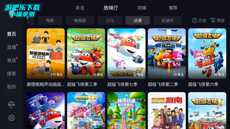 ② 找到内容:在“放映厅”选择电影/电视剧/少儿等分区;或在“搜索”输入片名与话题,勾选筛选条件快速定位。