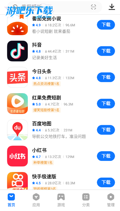 1、应用下载:推荐、应用、游戏、排行多种方式寻找你最喜欢的app;