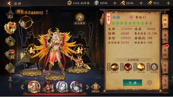 1、请神:界面内可以提升请神角色来提高自身战力。