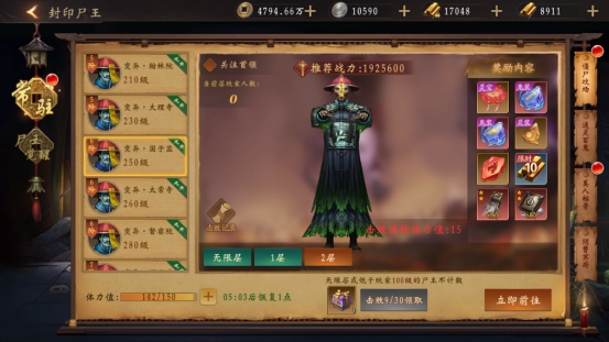 4、茅山赶尸:押运协助僵尸达到目的地可获取大量经验,每日有三次机会,四个形态可以召唤获取的经验也是逐步提升。