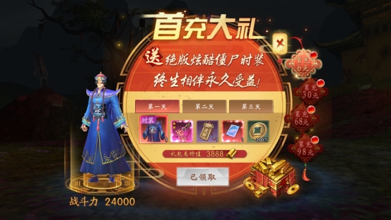 ★【进游福利】上线送全套僵尸家族主题套装,200级还可领取10张648元充值卡