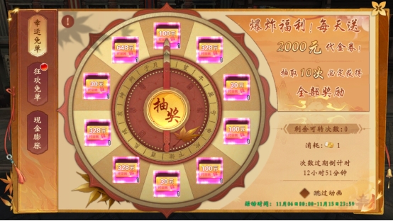 ★【至尊抽奖】至尊转盘每日可抽取最多2000元免单代金券