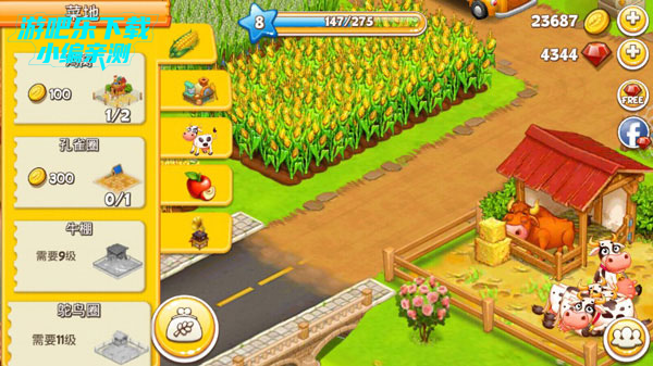 这是一个标准的农场,每天可以取得丰富的收成:草, 玉米, 蔬菜, 水果, 浆果。让全世界知道, 你是最好的农民!