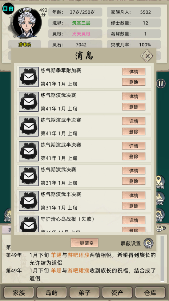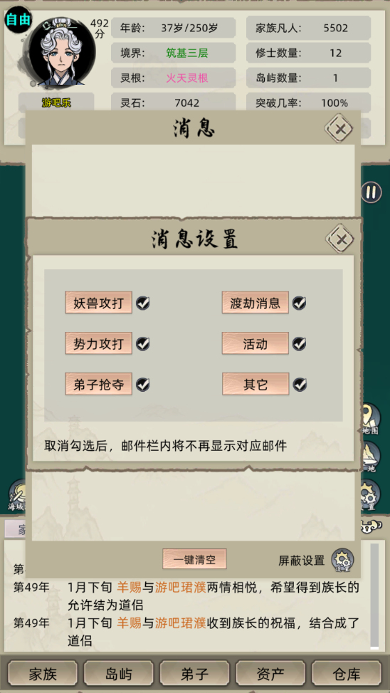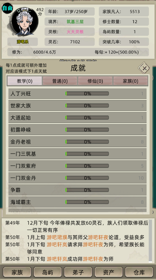 2.每年会根据势力拥有的领地凡人数量进行升仙大会,有一定机率发现外姓弟子