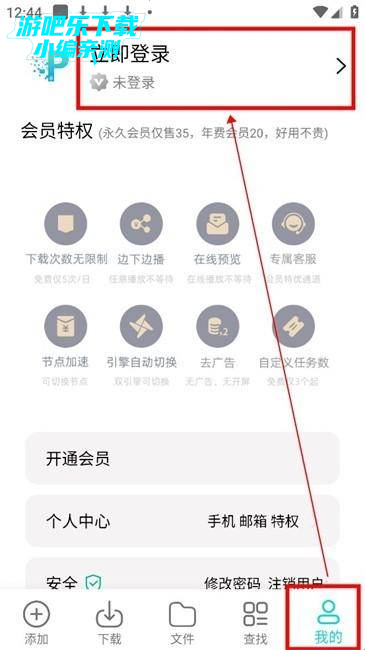 1、下载p2p下载器后打开软件,点击【我的】页面上的【立即登录】