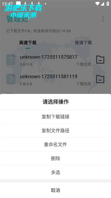 7、点击下载完成的内容,可以对其进行一些基础操作