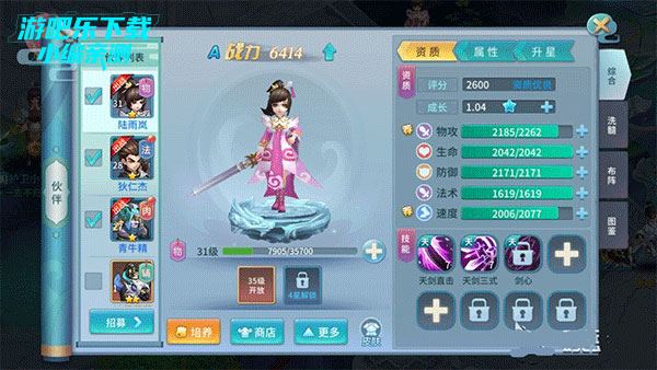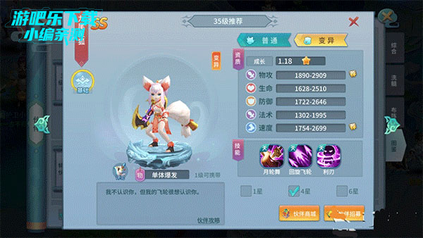 累计登录第二天会送S级猪八戒,第七天则会送SS级唐僧。可以使用普通银两、伙伴经验果、八宝粥、臭豆腐给伙伴们升级等级。图鉴中可以查看伙伴们达到一星、四星、六星不同阶段的形态,以及变异之后的效果。