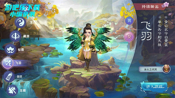 在进入游戏时玩家们可以选的职业有七种,分别是天罡(防守反攻)、太乙(群体法伤)、藏剑(物理点杀)、仙霞(法术治疗)、飞羽(持续输出)、御灵(摄魂引命)、龙裔(龙魂变身)。