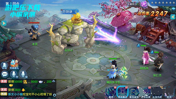 下面就是自己的技能,技能上面都标着是群体攻击、单体攻击、治疗,一目了然,也可以开启自动战斗。一般敌人的阵容若是分三排,先打自己正对的前排敌人。