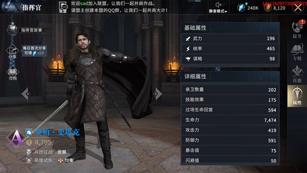 领主点击已经解锁的指挥官,可打开指挥官界面。在指挥官界面的右侧,可看到军阶提升相关信息。