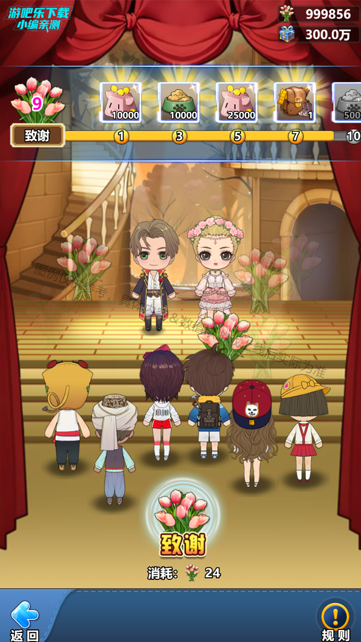 1. 致谢:正赛和展示期间,均可使用“花束”进行致谢。达到不同的致谢次数,可对应领取零花钱、宠物粮食、旅行包、“古堡密盒”等不同奖励。