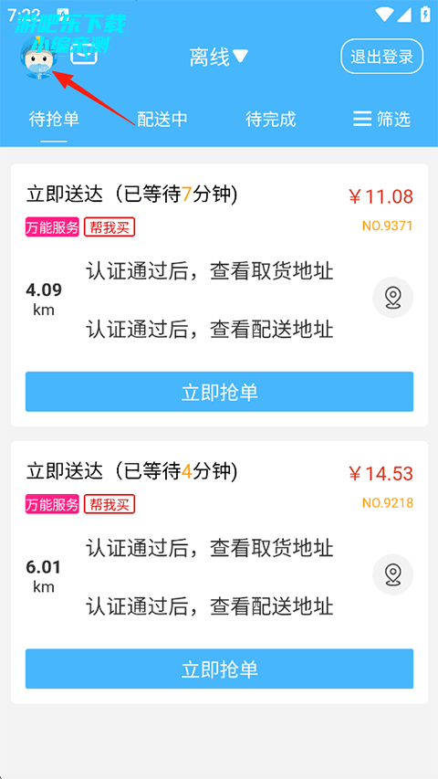1、打开登录抖送骑士版,在首页点击立即抢单;