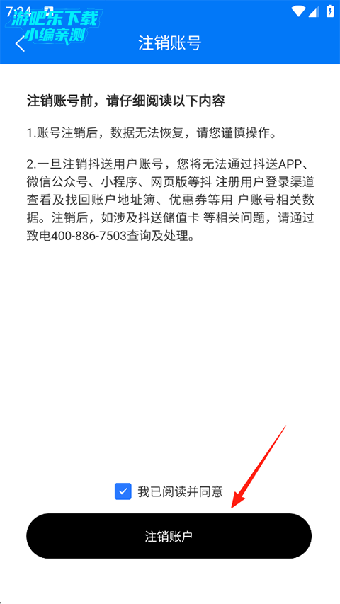 4、注销账号前阅读如下内容,确认无误后点击注销账户即可。