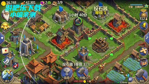军事发展的前提是军事建筑的合理搭建。而军事建筑又分为攻击性和防御性建筑。攻击性建筑有生产部队的兵营,解锁兵种的铁匠铺以及竞技场和帝王陵等,而防御性建筑则有营寨、马厩、箭塔、投石器、指挥所等,强悍的军事力量必然有着攻守兼备的军事建筑。