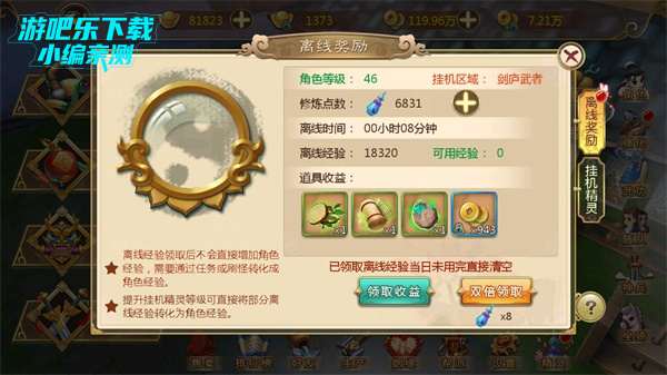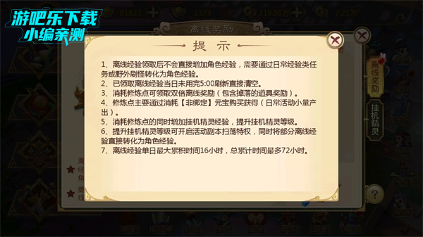 所以比较推荐的升级方法是:在打修炼之地之前,可以先离线一段时间以获取更多的离线经验。带着大量的离线经验进行修炼之地可以达到快速升级的效果!