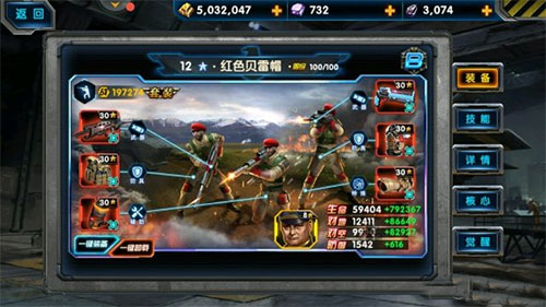 第四步,我们要提升技能,因为每个兵种又具有各自的主动技能、被动技能,消耗一定的技能点就可以免费升级我们的技能等级,提升攻击力、防御力等,随着技能等级的不断提升,兵种的战斗力就会越来越强。