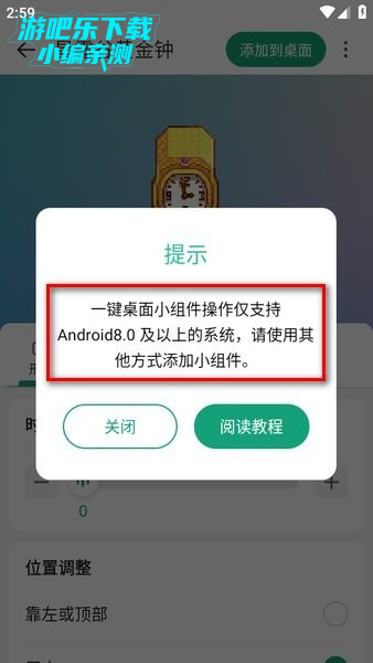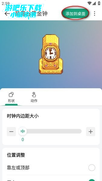 选择一个自己喜欢的小组件,比如星露谷黄金钟,点击右上角的“添加到桌面”;